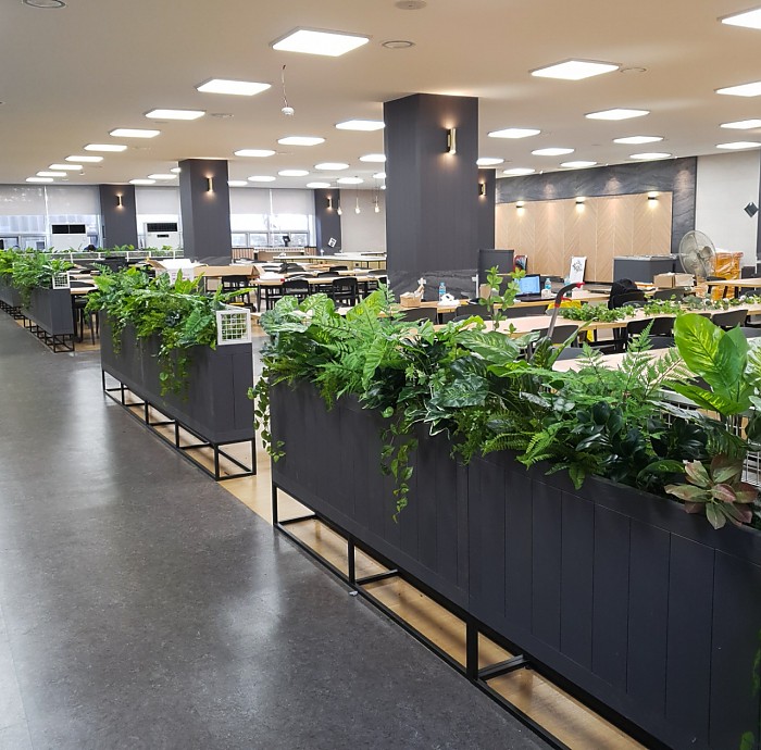 내부에 낮은 플랜트 박스를 넣어 식물을 식재, 관리하기