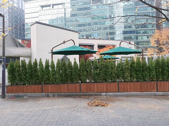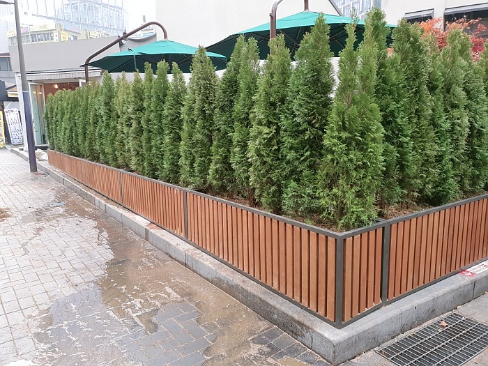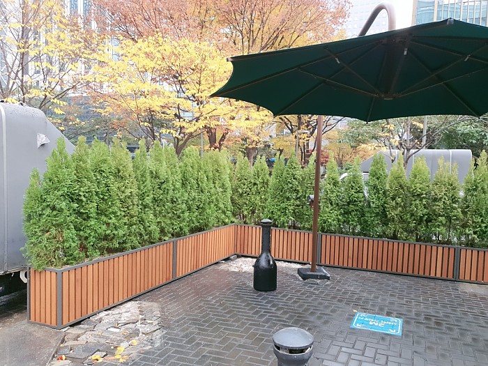플랜트박스에 높은 에메랄드 그린을 식재하여 울타리 역할을 하였어요!