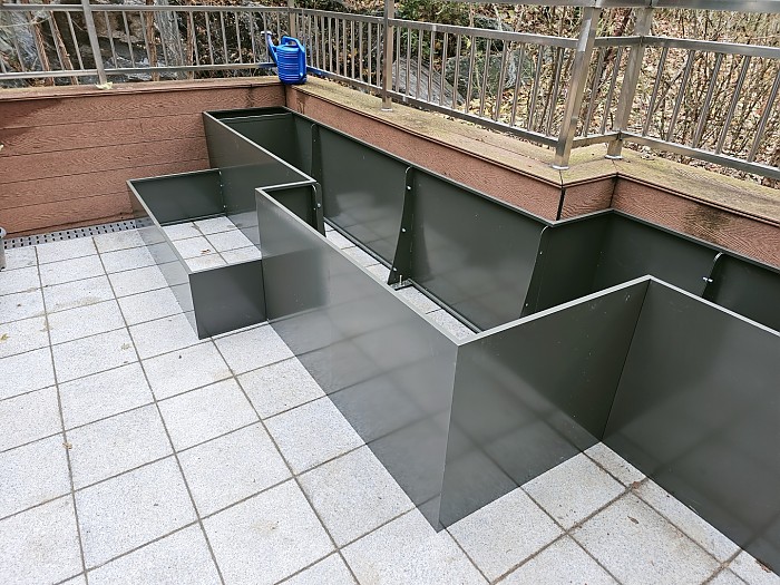 철제화단은 조립식 가벽으로 제작하여 조각마다 분체도장마감후 조립되기 때문에