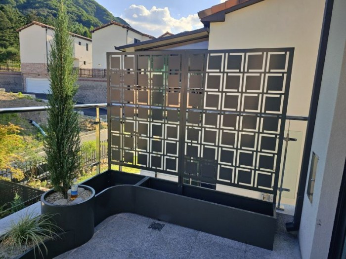 옆 건물과의 시선차단 역할로 제작된 철제휀스겸 플랜트박스입니다.