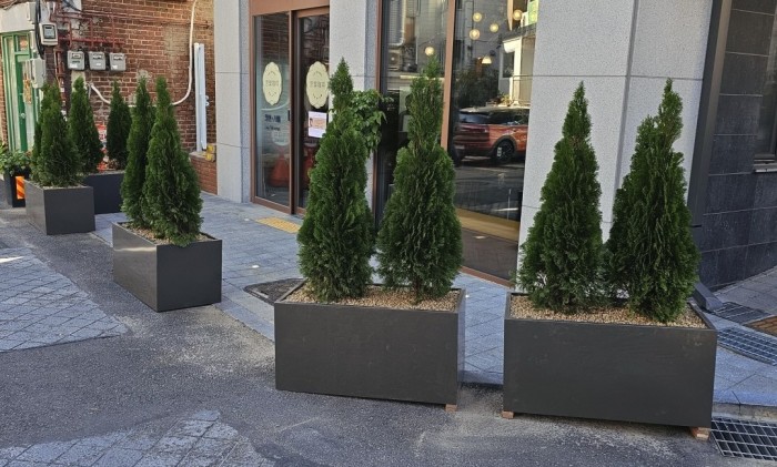 1000*500*H500 철제플랜트박스에 에메랄드그린 H1.2 박스당 2주씩 식재되었습니다.